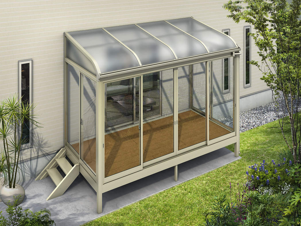 YKK AP「ソラリアR型 スタンダードタイプ」は、日常使いのしやすさと高い耐候性能を兼ね備えたサンルームです。